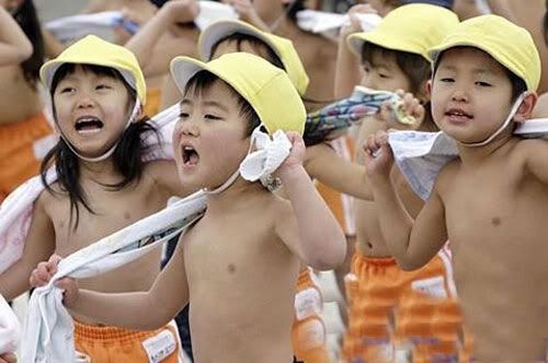 Những đứa bé Nhật ngay từ thơ bé đã được rèn luyện tính chịu đựng trước khó khăn và phải tự lập chủ động trong mọi biến cố có thể xảy ra. Tính tự lực và tự giác luôn được những ông bố bà mẹ Nhật Bản đưa vào phương pháp giáo dục con cái của mình. Qua những bài rèn luyện thể chất này, ở Nhật rất ít trẻ em mắc bệnh về đường hô hấp như sổ mũi, viêm họng... do thay đổi thời tiết.